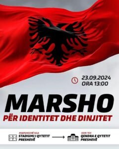 Kryetarja e Prehsves Ardita Sinani ka bërë të ditur se marshi në komunën e Preshevës do të mbahet më 23 shtator, duke filluar nga ora 13:00, ku sipas saj, protestuesit do të marshojnë nga stadiumi i qytetit të Preshevës e deri te qendra e qytet