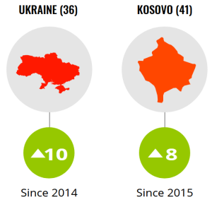 Progresi demokratik që ka arritur Kosova (41), veçanërisht në lidhje me zgjedhjet e lira dhe tranzicionin paqësor të pushtetit ende duhet të krahasohet me veprim kundër korrupsionit (The democratic progress that Kosovo (41) has achieved, particularly concerning free elections and peaceful transition of power still needs to be matched by action against corruption), Transparency International, Shqiperia ne rangun e 36, por ka edhe me keq Serbia ne te 37-in?!, njofton gazeta zvicerane ne shqip Le Canton27.ch