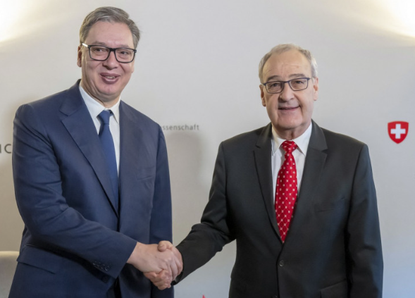 Presidenti i Zvicres ne Beograd foli me Vucicin edhe per Kosoven. Berna demanton, në Zvicër nuk janë 130 mijë serbë, por 55 mijë, siq e tha Parmelin