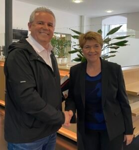 Redaktori i gazetes zvicerane ne shqip Le Canton27.ch pas konference se shtypit ka pasur rastin ta takoj presidenten e Konfederates Helevetike znj. Viola Amherd. Ajo marrëdhëniet me Shqieprine e Kosovën i ka cilesuar shume te mira.