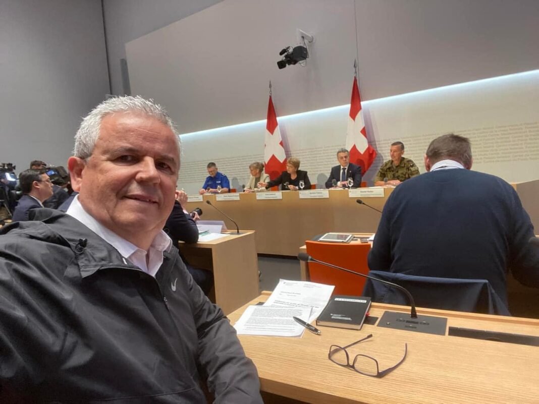 Bernë, 10 qrshor -Në palltin Fderal te konfderates zvcierane ne Bernë sot presidentja Viola Amherd, Ignazio Cassis, shefi diplomacise zvicerane te shoqëruar nga këshilltarja kantonale e Nidwaldenit Karin Kayser-Frutschi dhe komandete ushatrise dhe policse kane manjtru nje konference shytpi me agzetaret vedore dhe boteror, te cilet u informuan për Samitin për Paqen në Ukrainë në Bürgenstock, te clen e ndoqi edhe redaktori i gaztes zcerane ne shqip Le Canton27.ch