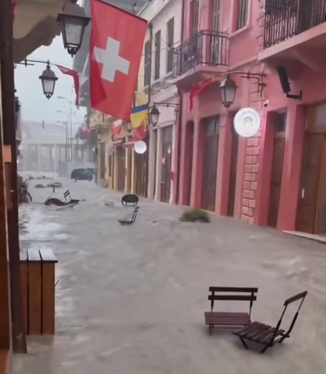 Flamuri zviceran shpëton nga vershimet ne Shqipëri. Nuk është në Zvicer, por vërshimet dje dhe sot ne Shqiperi, në foto në Vloren e Ismajl Qemajlit i cili ne vitin 1912 ngriti flamurin  shqiptare ne Vlore dhe shpalli paamvresine e shetit shiptarë, ka shkruar gazeta zvicerane ne shqip Le Canton27.ch