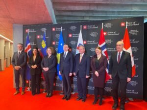 Bernë, 22 janar (Nefail Maliqi) -Në margjinat e Forumit Ekonomik Botëror në Davos, Kanecelarit Federal Guy Parmelin dhe përfaqësuesit e shteteve të tjera të EFTA, Islanda, Lihtenshtajni dhe Norvegjia, nënshkruan marrëveshjen e tregtisë së lirë me Ministrin e Industrisë së Kosovës. , Sipërmarrje dhe Tregti, Rozeta Hajdari. Në ceremoninë e nënshkrimit ishte i pranishëm edhe kryeministri i Kosovës, Albin Kurti, njofton gazeta zvicerane në shqip Le Canton27.ch duke ju referuar nje komunikate për media leshuar nga Qeveria Helvetike ne Bernë.