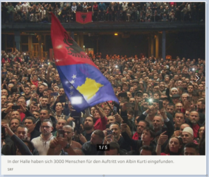 Bernë, 26 janar -Lideri Albin Kurti vjen direkt nga WEF në Davos. Kryeministri aktual kosovar u gjen ne mesin e mijërave kosovarë në Cyrih të Zvicrës. Zgjedhjet parlamentare në Kosovë do të mbahen më 9 shkurt. Kjo paraqitje e fushatës zgjedhore jashtë vendit, mbrëmjen e kësaj të enjte me mbi 3000 pjesdemarres (3,000 people gathered in the hall for Albin Kurti’s performance) nuk mund të jetë më e rëndësishme për Kurtin, ka raportuar RTV shteror zviceranë (SRF) citon gazeta zvicerane ne shqip Le Canton27.ch