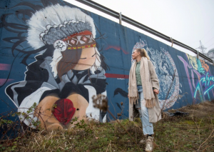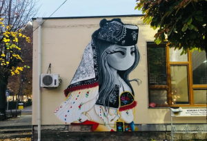 Në një nga këto murale shihet një vajzë e veshur me motive të veshjeve tradicionale të amerikanëve nativë dhe që mban në duar kokën e “Hyjneshës në Fron”, simbol i qytetit të Prishtinës.