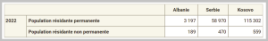Në sfondin e këtij debati, sipas gezates zvicerane NZZ « grupi i ekspertëve Iniciativa Evropiane për Stabilitet (ESI) analizoi zhvillimin demografik të serbëve në Kosovë. Në kohën e regjistrimit të fundit jugosllav në vitin 1991, në Kosovë jetonin 194.000 serbë. Në vitin 2002 ishin 129.000. Megjithatë sot janë maksimumi 100.000. (Zum Zeitpunkt der letzten jugoslawischen Volkszählung 1991 lebten 194 000 Serben in Kosovo. Noch im Jahr 2002 waren es 129 000. Heute dagegen sind es maximal 100 000.)