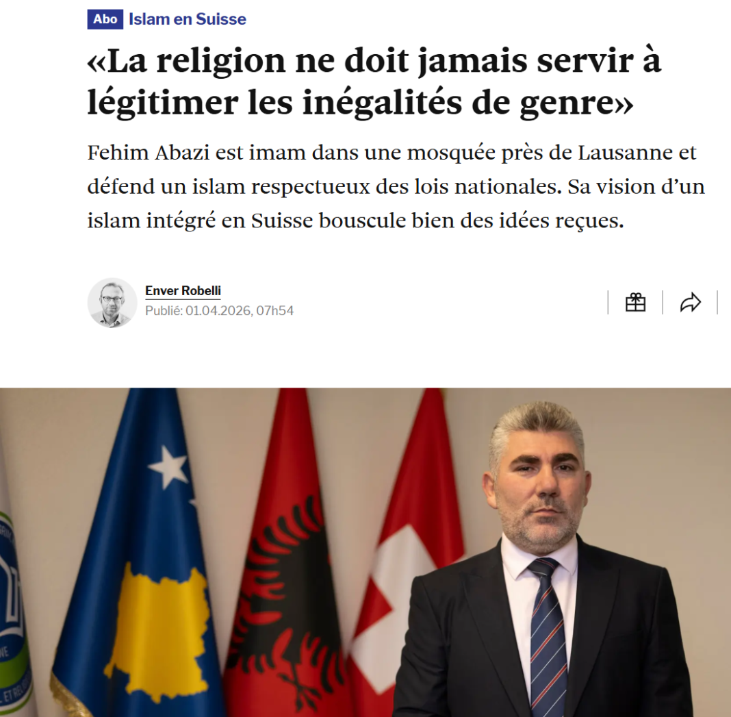 Gjenevë, 1 prll -Fehim Abazi është imam në një xhami pranë Lozanës dhe mbështet një Islam që respekton ligjet kombëtare. Vizioni i tij për një Islam të integruar në Zvicër sfidon shumë nocione të paragjykuara, skruan gazeta zvicerane Tribune de Geneve, citon gazeta zvicerane në shqip LeCanton27.ch