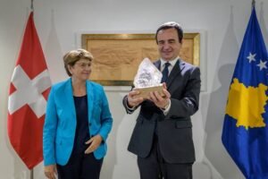 «La Suisse entretient de bonnes relations avec le Kosovo, c’est pourquoi notre gouvernement continue de s’engager dans la région. Swisscoy travaille avec succès dans la région, ce qui est très important, même l’année dernière, nous avons augmenté le nombre de soldats au Kosovo. J’ai dit cela parce que la guerre en Ukraine a pour priorité la paix, et là où de nombreux pays européens sont aujourd’hui engagés en Ukraine, c’est aussi la raison pour laquelle nous avons augmenté le nombre de nos forces au Kosovo. Swisscoy au Kosovo fait un excellent travail en faveur de la paix et de la stabilité dans la région, mais n’oubliez pas qu’un jour nous en partirons, bien sûr lorsque la région aura connu une stabilité durable, lorsque tous les peuples vivront ensemble en harmonie et paix… » a déclaré la présidente de la République Viola Amherd en réponse à la question du rédacteur en chef du journal suisse de langue albanaise Le Canton27.ch