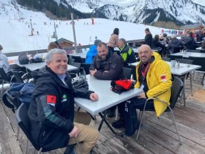 Le rédacteur en chef du journal suisse Le Canton27.ch Nefail Maliqi avec Lara Culturi, la championne albanaise de ski lors des compétitions dans les Alpes françaises