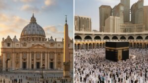 Qabja dhe Vatikani janë dy nga qendrat fetare më të rëndësishme, por të dallueshme, në botë, që përfaqësojnë përkatësisht pikat qendrore për Islamin dhe Katolicizmin Romak.