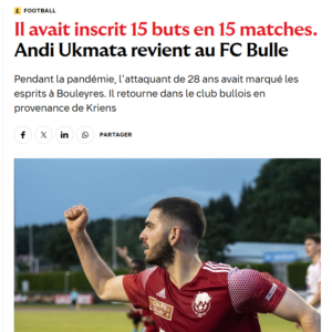 Një fytyrë e njohur vjen në Bulle për sezonin e ardhshëm. I rikthyer në divizionin e parë, Andi Ukmata shënoi 15 gola në 15 ndeshje gjatë mandatit të tij të parë si trajner i FC Bulle gjatë pandemisë (2020-2021). Sulmuesi 28-vjeçar që atëherë ka luajtur për ekipin rezervë të Bavois dhe Lausanne-Sport (duke u bërë golashënuesi i tyre më i mirë me 36 gola), dhe së fundmi, për FC Kriens.