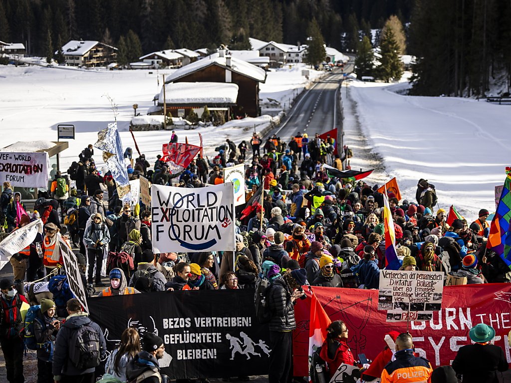 Kundërshtarët e Forumit Ekonomik Botëror (WEF) u mblodhën në Bernë të shtunën për një demonstratë të paautorizuar. Nga Küblis (Grisons), afërsisht 350 persona u nisën për në Davos (Grisons) në një marshim kundër WEF-it.